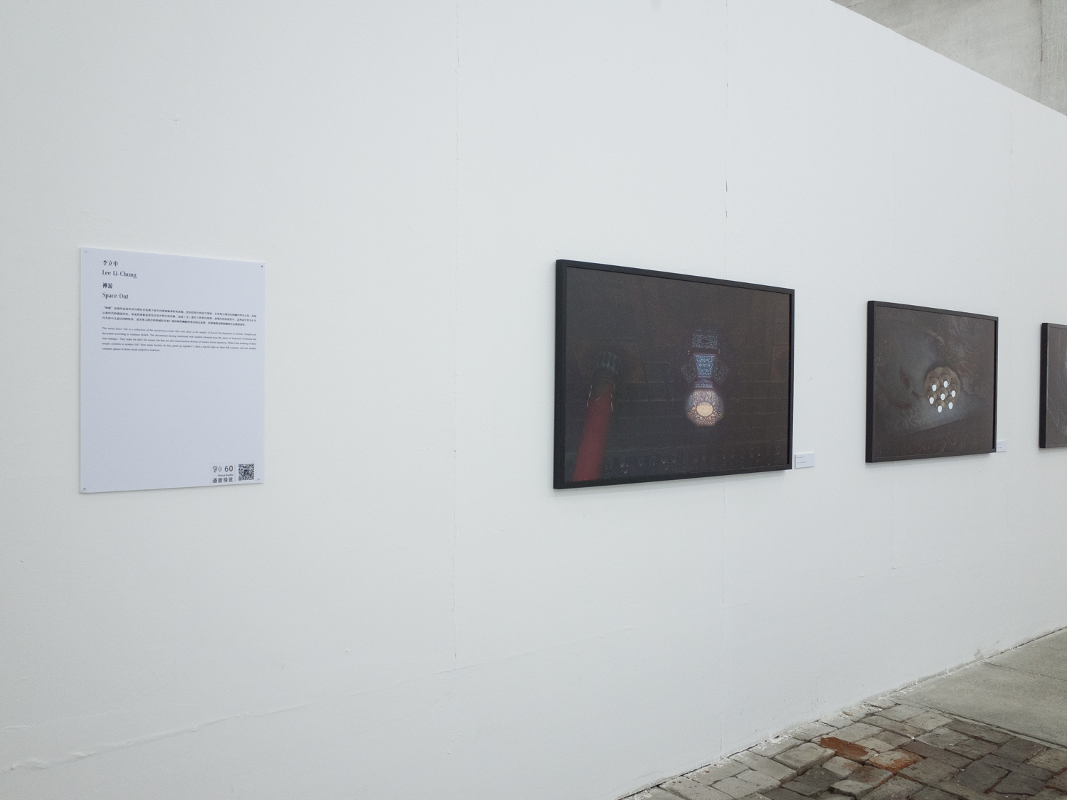 神人之間交會的邊境如果可以被具體地指認,那應該就是廟宇內部最接近天的位置。李立中的「神遊」系列拍攝台灣廟宇的藻井或天花,在如傘蓋層層裝飾華麗莊嚴的棚頂,或者裝飾了壁畫的仙界景致之下,因應人間生活需求而來的照明設備在整個傳統中國建築形制,以及保有佛教美術傳統的建築繪飾裡,成為一種超時空的存在。這些燈光位於挑高室內的頂端,因此在實用上需要足夠的強度才能夠照亮整個空間,然而它們對比於傳統建築或者宗教繪畫,卻顯得有些格格不入,即便它們光芒萬丈地呼應了此景此地的某種精神高度。
